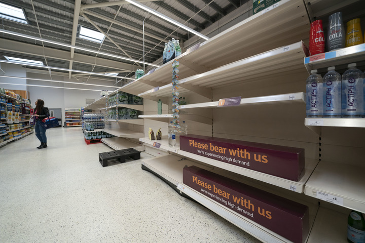这是9月22日在英国曼彻斯特拍摄的一家超市的货架。新华社发(乔恩·休珀摄)