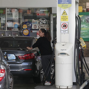 9月27日,一名女子在英国伦敦一家加油站加油。新华社记者韩岩摄