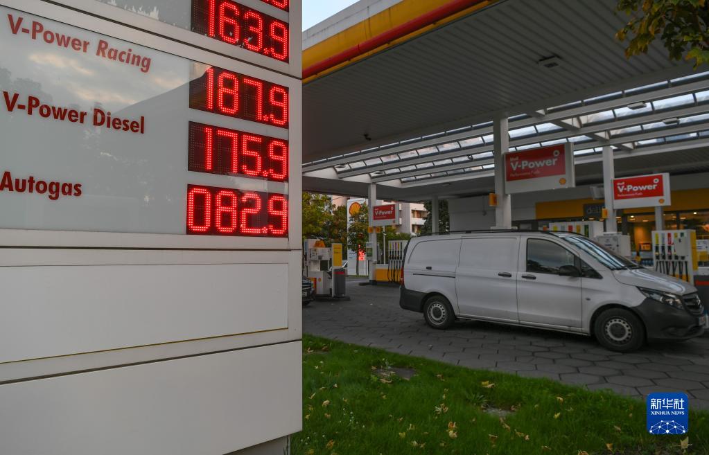 这是10月8日在德国法兰克福拍摄的一家加油站。