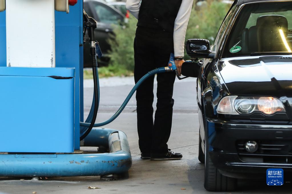 10月1日,一名顾客在德国柏林的一家加油站为汽车加油。