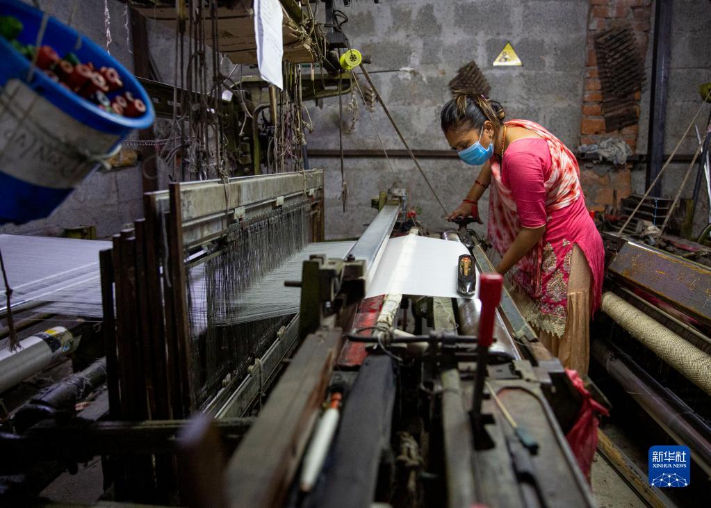 10月10日,一名工人在尼泊尔加德满都的一处披肩工厂工作。