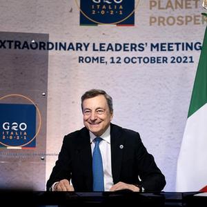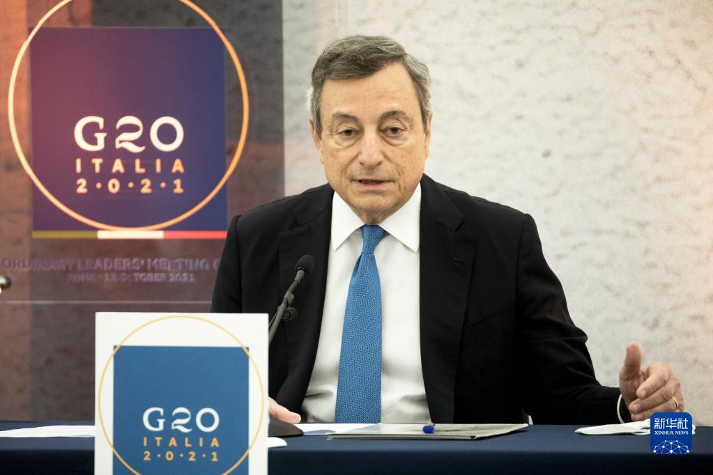 10月12日,意大利总理德拉吉在罗马出席二十国集团阿富汗问题领导人特别峰会新闻发布会。