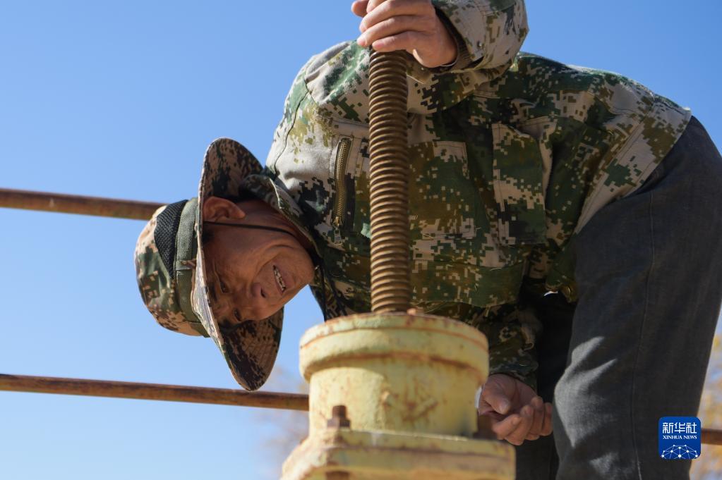 10月11日,护林员魏存广在额济纳旗七道桥胡杨林区查看水闸设备情况。新华社记者 李志鹏 摄