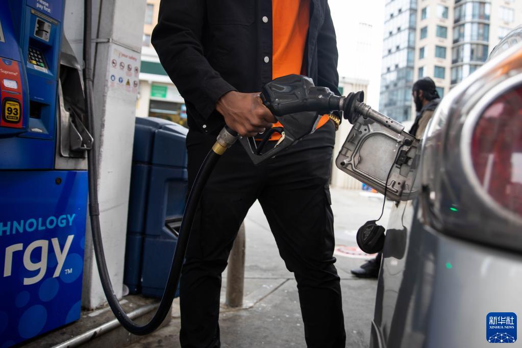 10月13日,一名男子在美国纽约一家加油站加油。新华社发