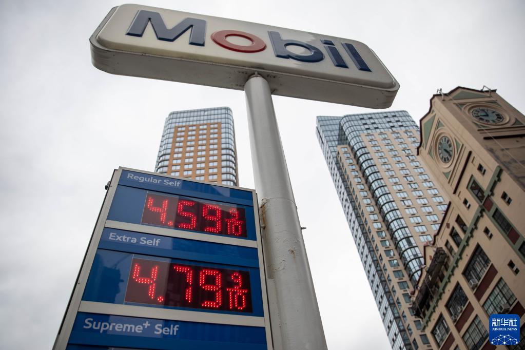10月13日,美国纽约一家加油站的电子屏显示油品价格。新华社发