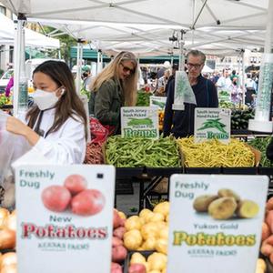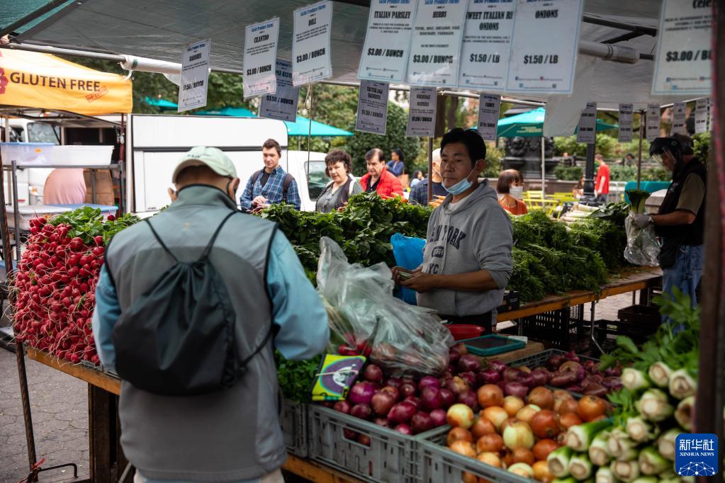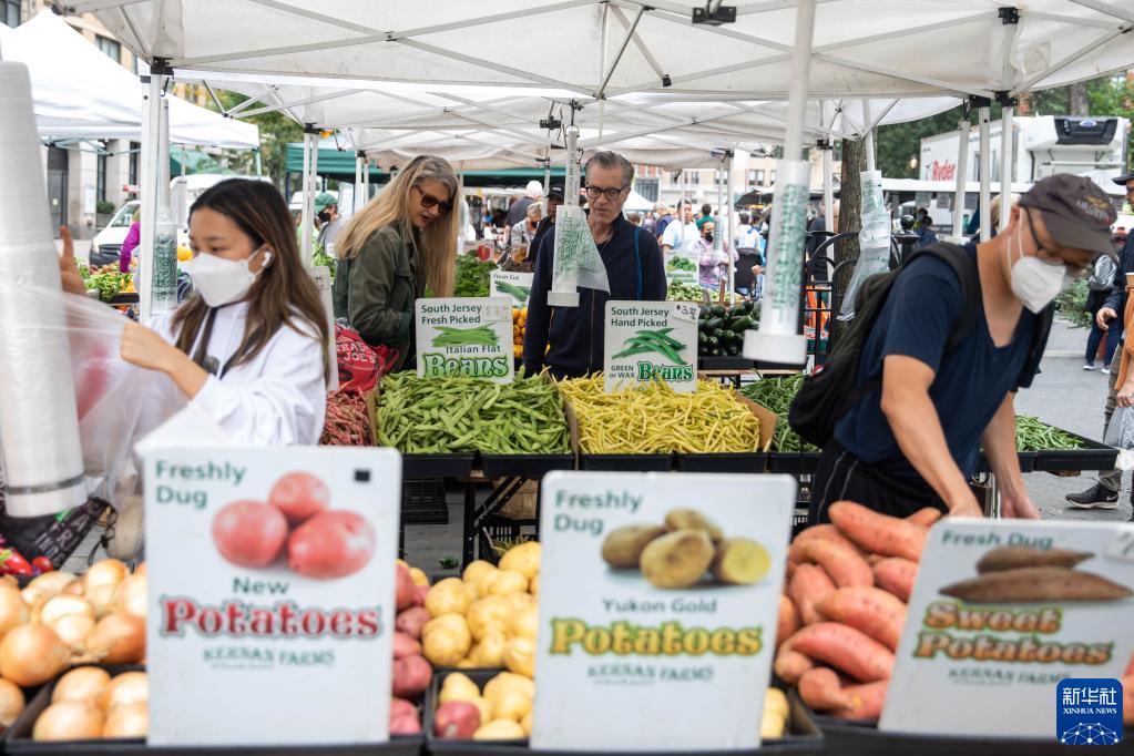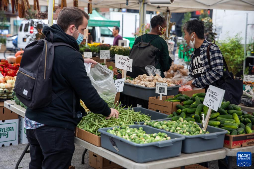 10月13日,人们在美国纽约一处农贸市场购物。新华社发