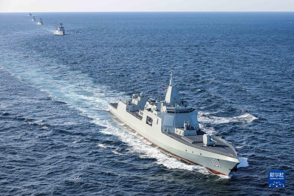 10月15日,在俄罗斯彼得大帝湾附近海空域,中国海军舰艇编队在中俄“海上联合-2021”联合军事演习期间航行。