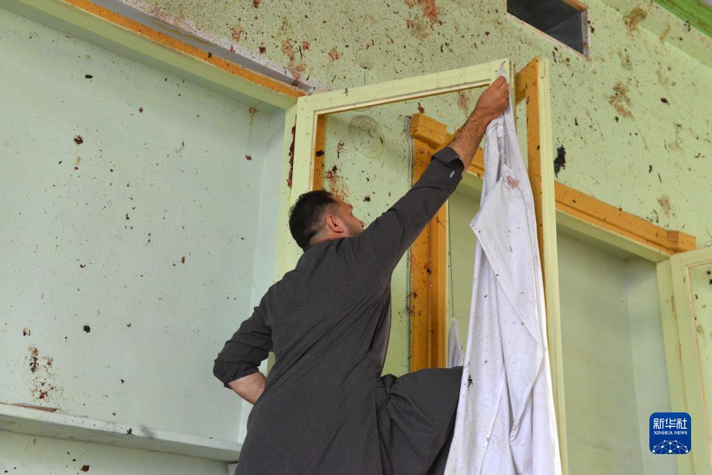 这是10月15日在阿富汗南部坎大哈省坎大哈市拍摄的清真寺爆炸现场。