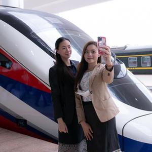 “澜沧号”动车组16日运抵刚刚建成的中老铁路万象站,正式交付老中铁路有限公司。中国驻老挝大使姜再冬、老挝公共工程与运输部部长荣沙瓦出席了在万象站举行的“澜沧号”动车组交付仪式。