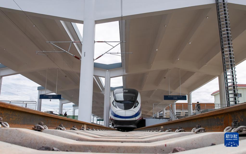 “澜沧号”动车组16日运抵刚刚建成的中老铁路万象站,正式交付老中铁路有限公司。中国驻老挝大使姜再冬、老挝公共工程与运输部部长荣沙瓦出席了在万象站举行的“澜沧号”动车组交付仪式。