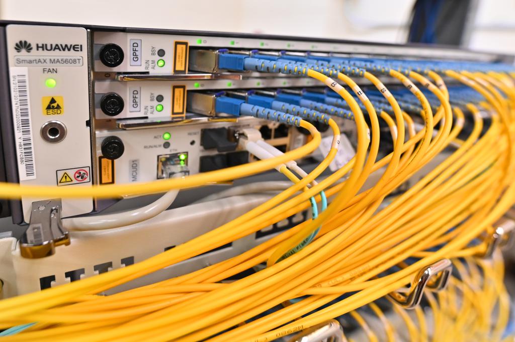 这是10月7日在美国宾夕法尼亚州南迦南镇LHTC宽带公司拍摄的当地营业部使用的华为通信设备。新华社发