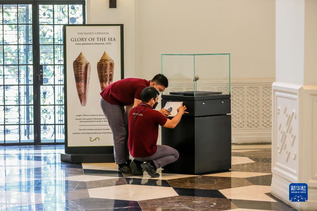 10月19日,工作人员在位于菲律宾马尼拉的菲律宾国家博物馆布展。菲律宾政府近来放宽疫情管控措施,首都马尼拉允许包括博物馆在内的公共场所有限度恢复运营。新华社发(乌马利摄)
