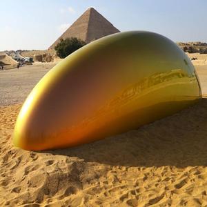 这是10月21日在埃及吉萨金字塔景区举办的艺术展上拍摄的一件艺术作品。