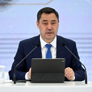 10月23日,吉尔吉斯斯坦总统扎帕罗夫在首都比什凯克总统官邸出席年度记者会。新华社发(吉尔吉斯斯坦总统新闻局供图)