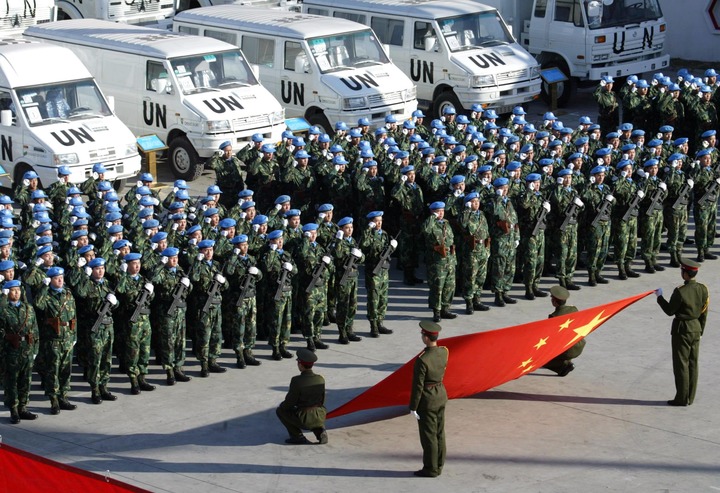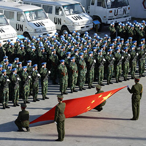 2003年12月9日,中国赴利比里亚维和部队运输连官兵出发前面向国旗庄严宣誓。新华社记者 王建民 摄