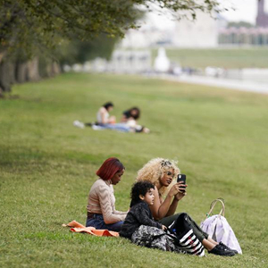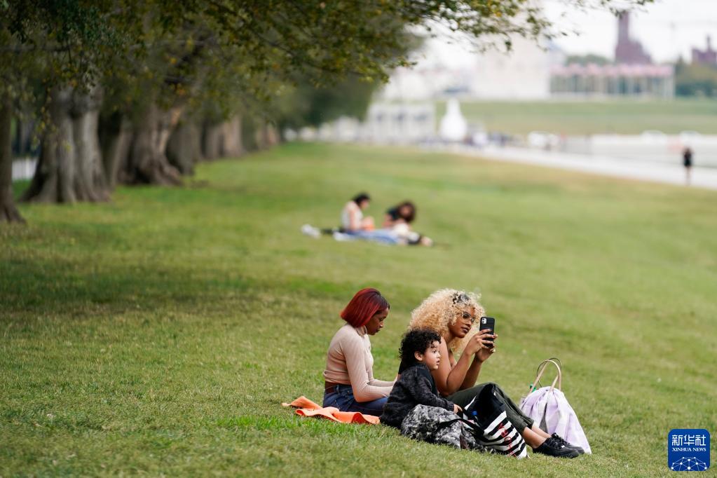 10月25日,人们在美国首都华盛顿的国家广场休闲。