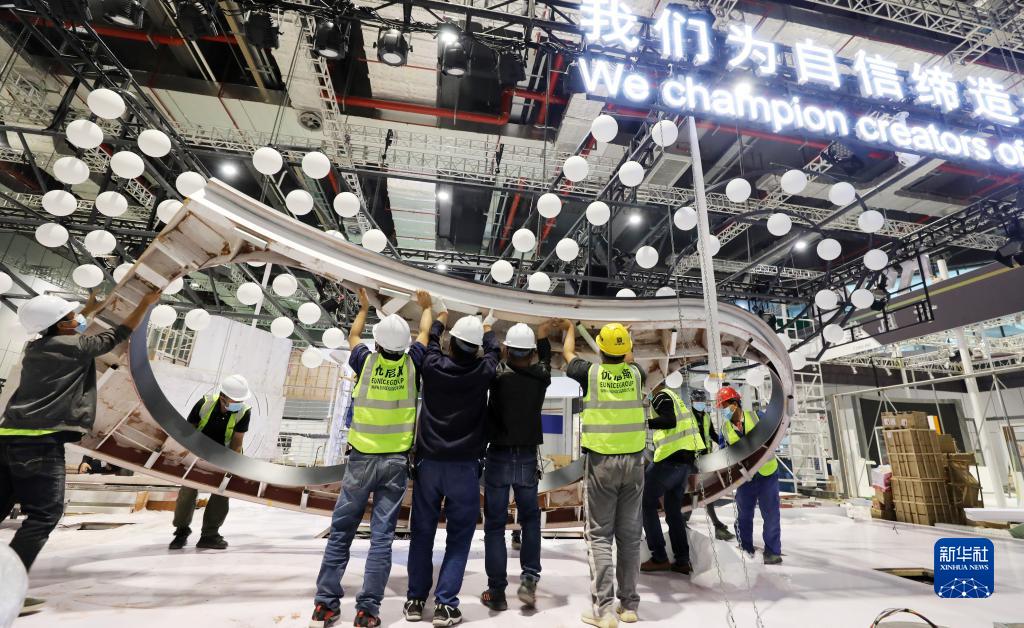 目前,在位于上海市青浦区的进博会举办地国家会展中心(上海)内,各大展区展台的搭建、布展工作正有序进行。第四届中国国际进口博览会将于11月5日至10日在上海举办。