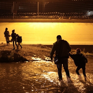 这是3月30日在墨西哥边境城市华雷斯一侧拍摄的海地移民穿过布拉沃河从墨西哥试图进入美国。(新华社发,佩纳多摄)