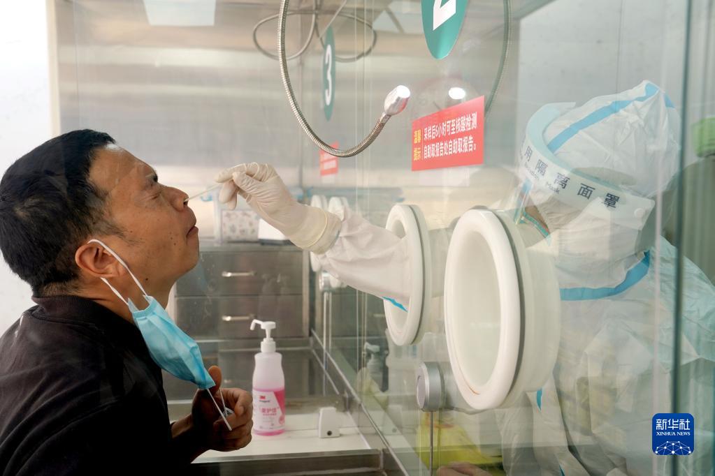10月30日,在上海市第八人民医院,医务人员在进行核酸采样。从10月28日起,该院开始提供24小时核酸检测服务。