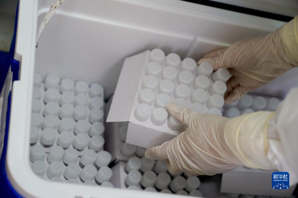10月30日,上海市第八人民医院的医务人员将采集的样本放入转运箱,等待送检。