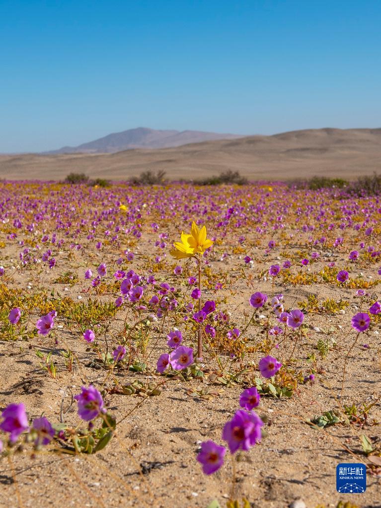 10月13日,智利北部阿塔卡马沙漠中鲜花盛开。