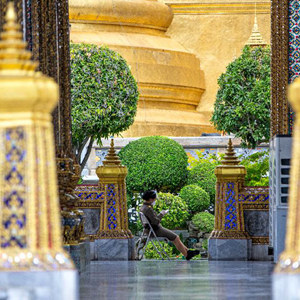 11月1日,一名游客在泰国曼谷大皇宫景区游览。