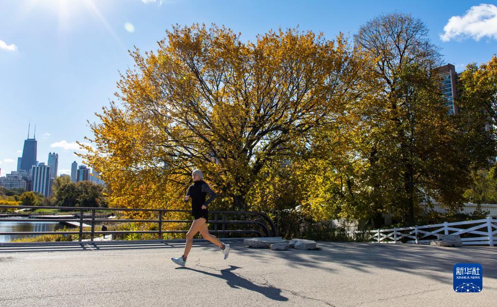11月2日,一名女子在美国芝加哥林肯公园动物园跑步。