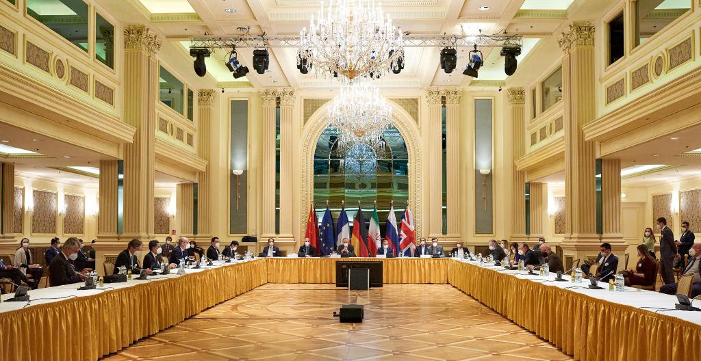 这是4月6日在奥地利首都维也纳举行的伊朗核问题全面协议相关方会议,会议讨论美伊恢复履约问题。(新华社发)