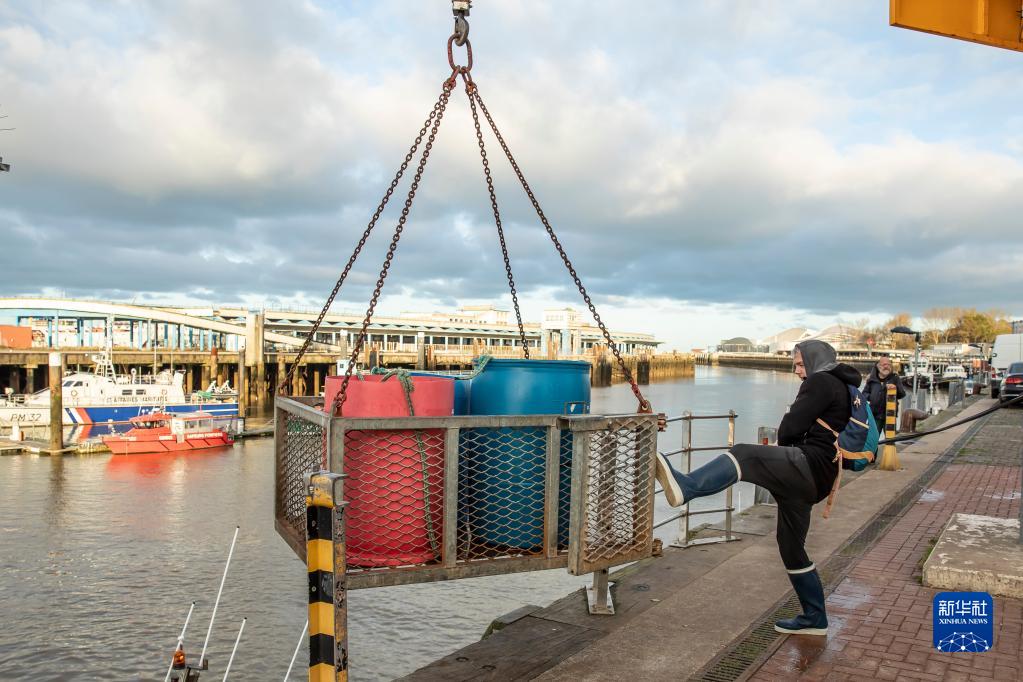 11月5日,在法国北部海滨城市滨海布洛涅,一位渔民从出海归来的渔船上卸货。据法国媒体报道,博纳和弗罗斯特将于下周继续会谈。华社发(塞巴斯蒂安·库尔吉摄)