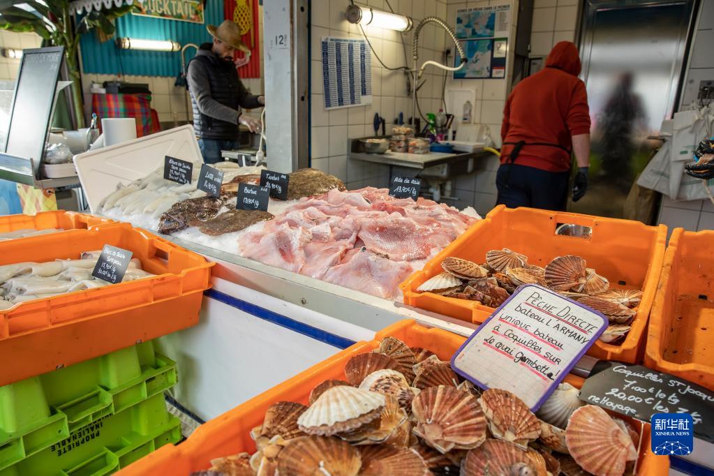 这是11月5日在法国北部海滨城市滨海布洛涅拍摄的早间鱼市。新华社发(塞巴斯蒂安·库尔吉摄)