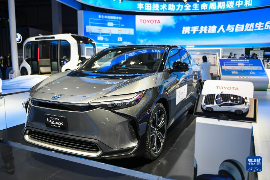 11月5日在第四届进博会汽车展区拍摄的丰田新能源汽车。