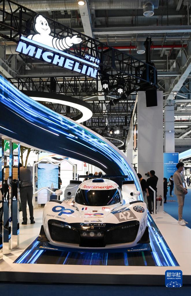 11月5日在第四届进博会汽车展区拍摄的米其林新能源赛车。