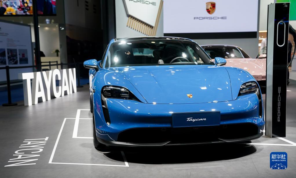 11月5日在进博会汽车展区拍摄的保时捷Taycan电动汽车。