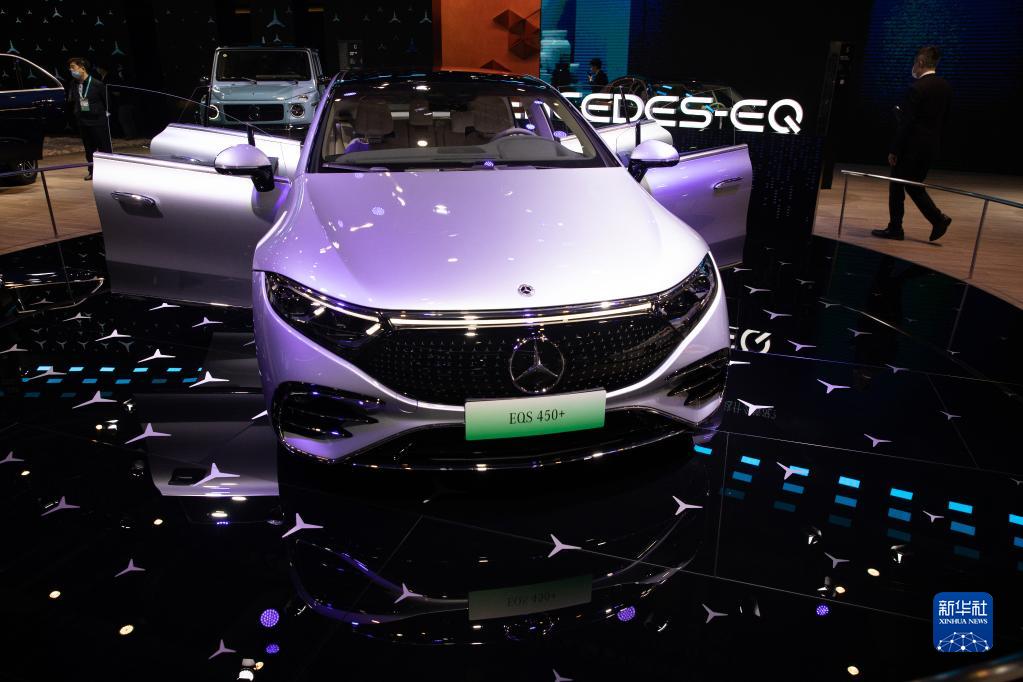 11月5日在第四届进博会汽车展区拍摄的奔驰新能源汽车。