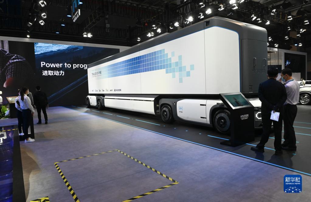 11月5日在第四届进博会汽车展区拍摄的氢动智能无人运输车。
