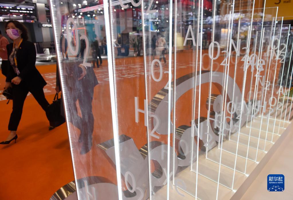 11月5日,人们从第四届进博会技术装备展区林德气体展台前走过。
