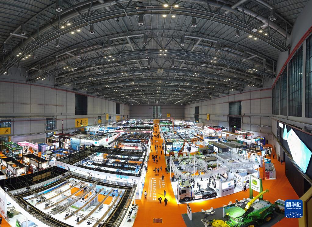 11月5日拍摄的第四届进博会技术装备展区(全景拼接照片)。