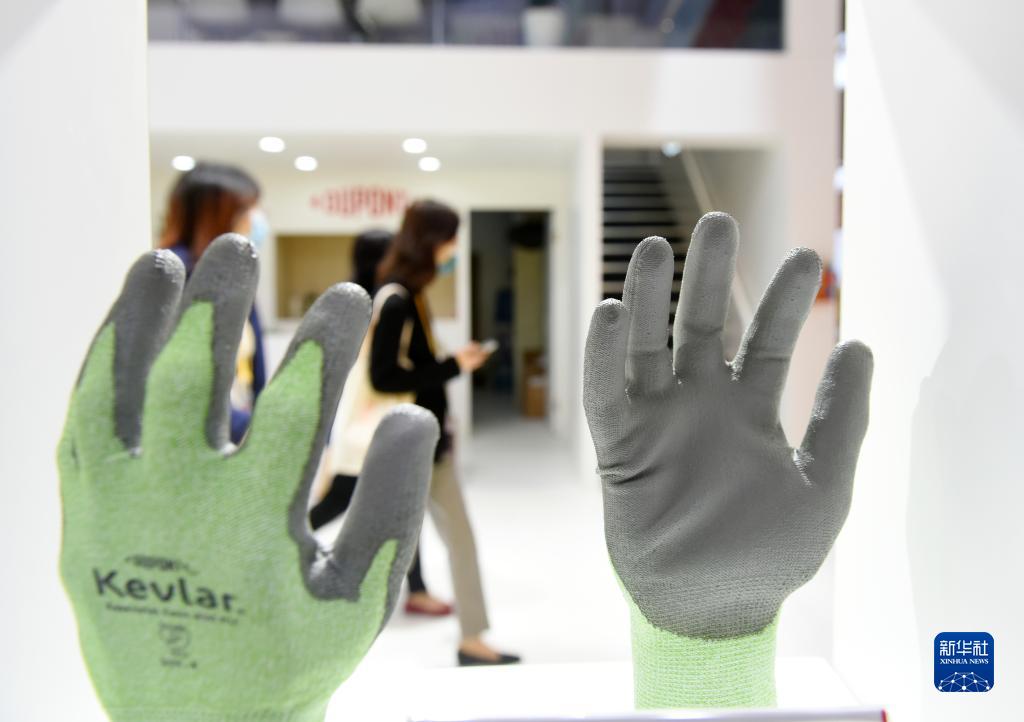 11月5日在第四届进博会技术装备展区杜邦展台拍摄的切割防护手套。