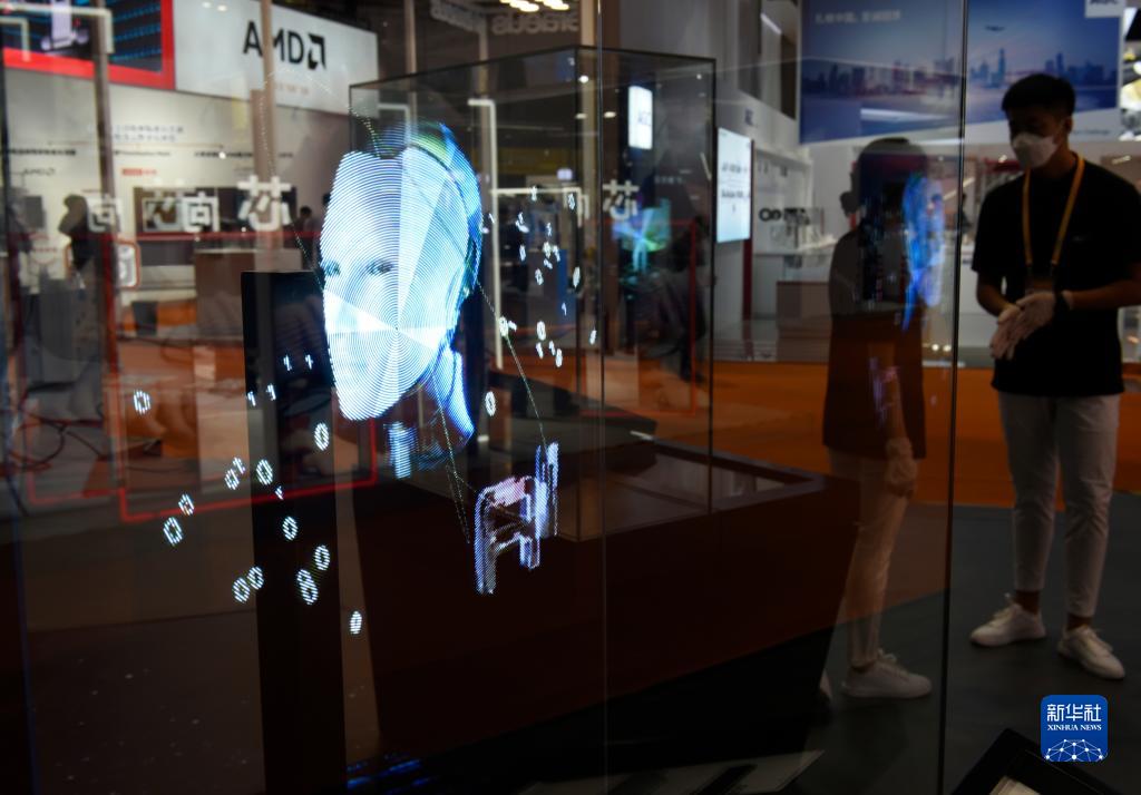11月5日在第四届进博会技术装备展区SK海力士展台拍摄的芯片应用展示。