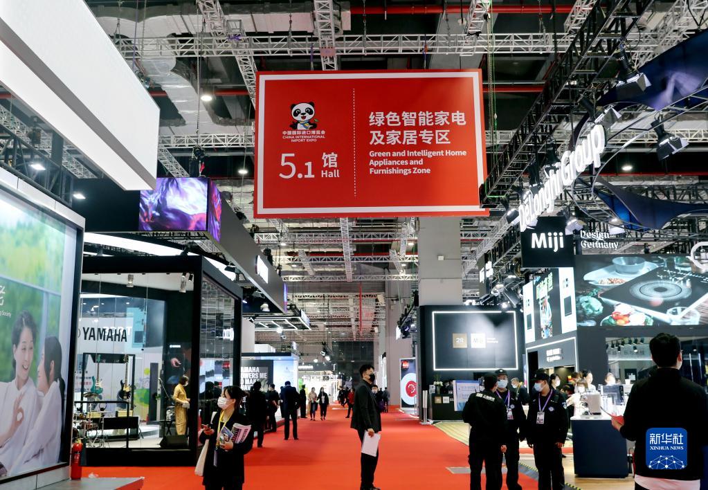 11月5日拍摄的第四届进博会新设的绿色智能家电及家居专区。