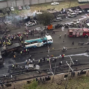 塞拉利昂警方6日说,在首都弗里敦市5日的油罐车爆炸事故中,已有100余人死亡、多人受伤。新华社发(阿布摄)