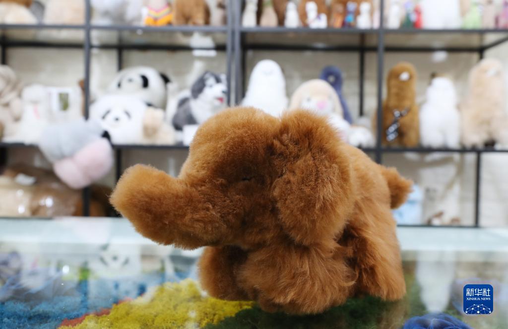 在马玉霞位于上海的办公室内拍摄的小象造型的羊驼毛玩偶(10月15日摄)。