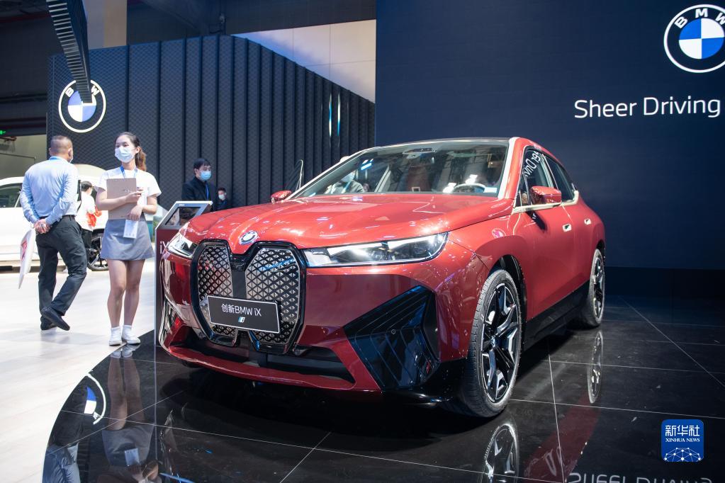 11月7日在第四届进博会汽车展区宝马展台拍摄的新能源汽车BMW iX。