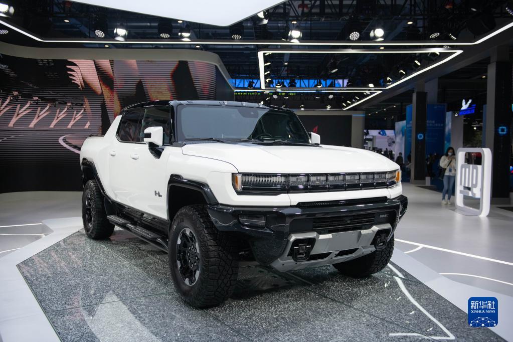 这是11月7日在第四届进博会汽车展区拍摄的纯电悍马超级皮卡。