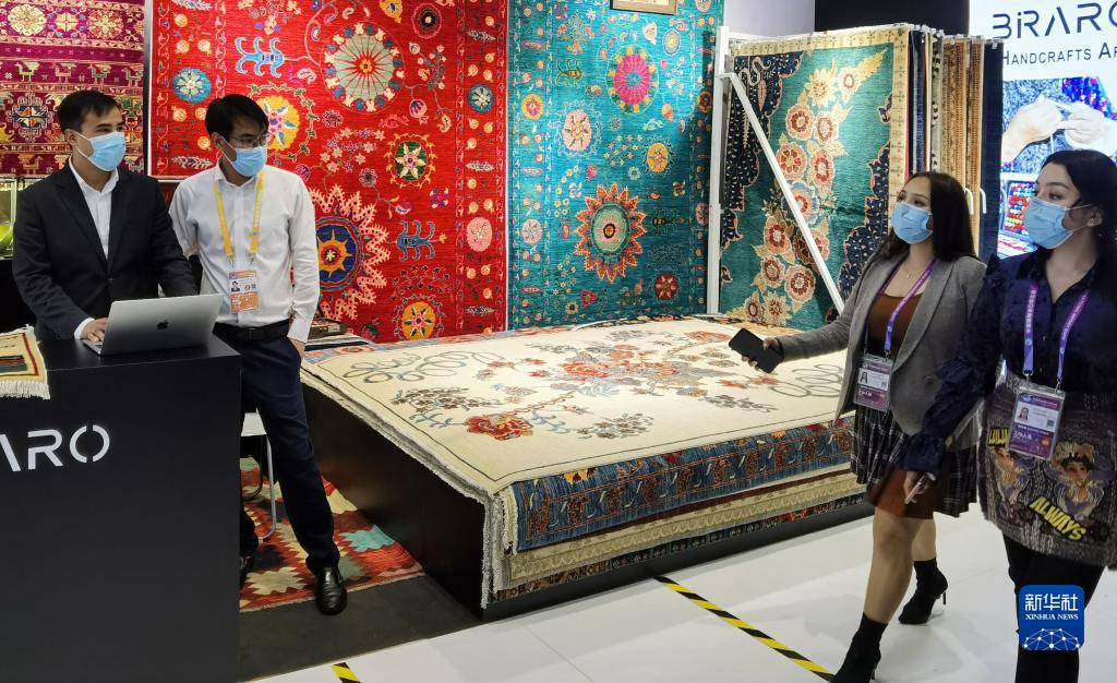 11月5日在第四届进博会上拍摄的阿富汗手工羊毛地毯展台。