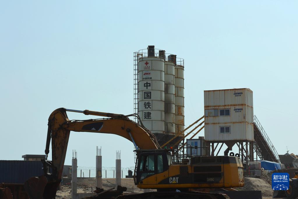 11月4日,在加纳首都阿克拉,挖掘机在中国援建加纳渔港综合设施项目施工现场作业。