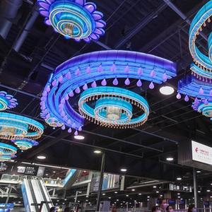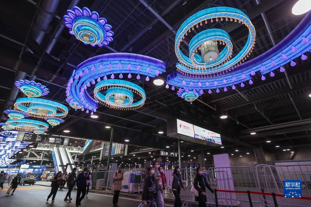 在第四届中国国际进口博览会上,来自四川省自贡市的彩灯扮靓昵称为“四叶草”的国家会展中心(上海)。