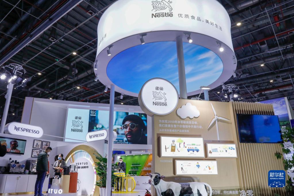 这是11月9日拍摄的进博会食品及农产品展区的瑞士雀巢展台。