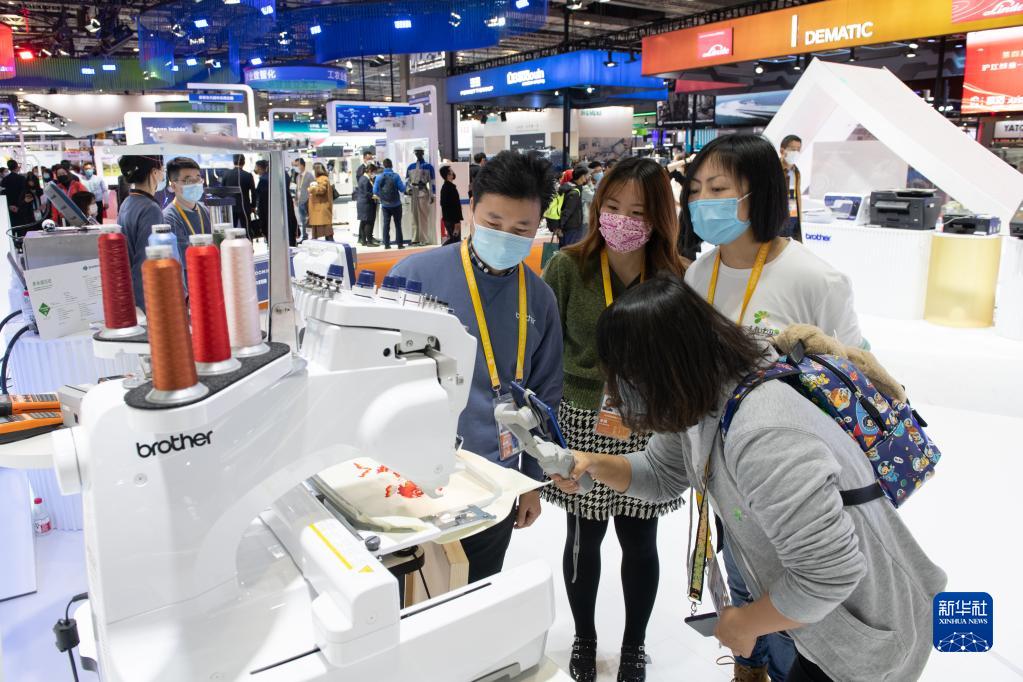 这是11月8日拍摄的进博会技术装备展区的日本Brother集团展台。