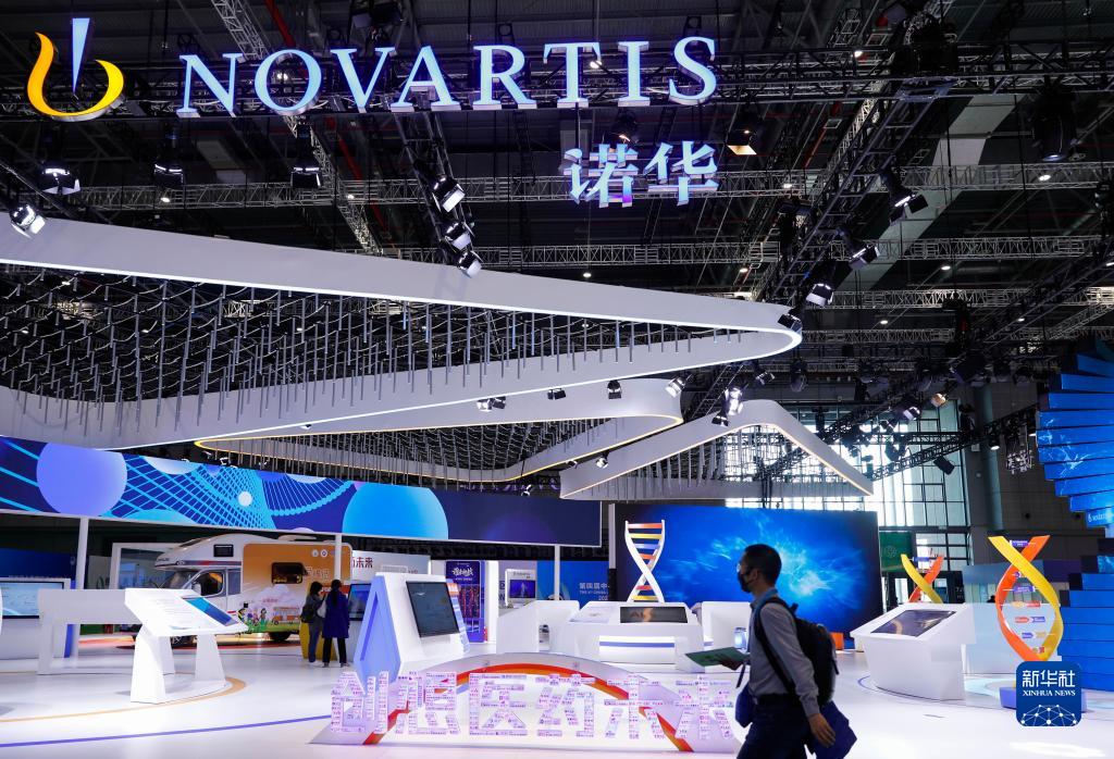 这是11月9日拍摄的进博会医疗器械及医药保健展区的瑞士诺华展台。